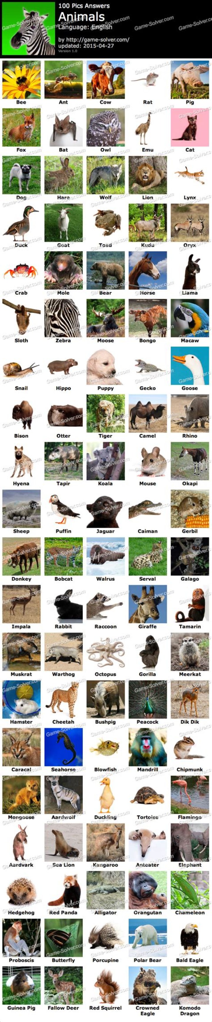 100 Pics Animals Answers, Cheats, Solution, Walkthrough for iPhone, iPad, Android, Kindle and other devices and game by 100 Pics.