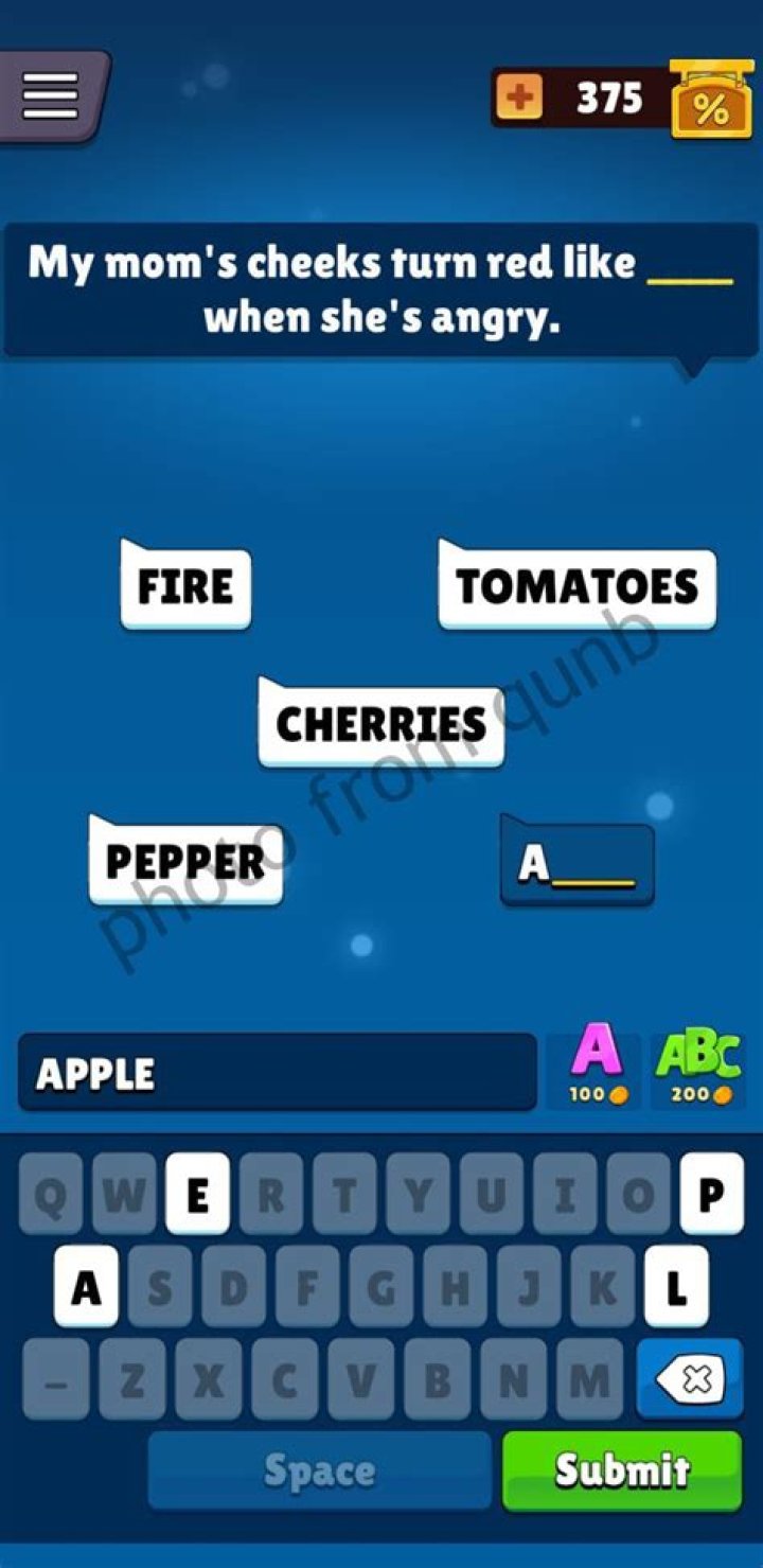 My mom’s cheeks turn red like ____ when she’s angry. Popular Words : Answers