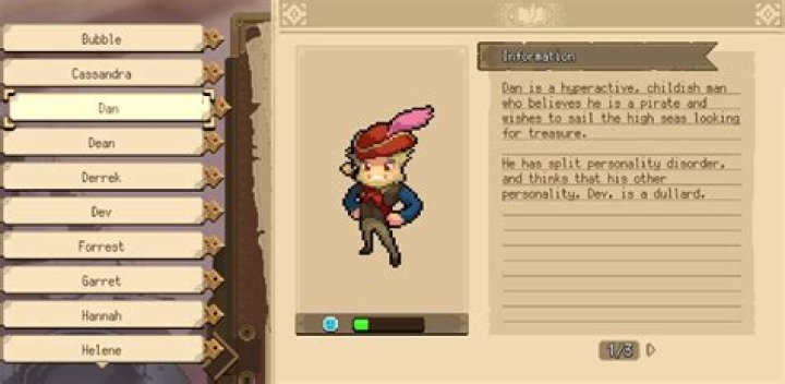 Dev is the other half of Dan, and thankfully much easier to find than Dan is. Dev lives at Dev’s house, and works at the town hall in the post-office section. You can find him there most days.