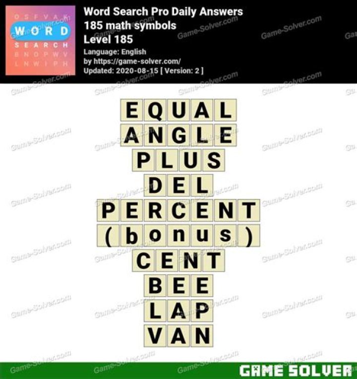 - Word Search Pro Daily 185 math symbols